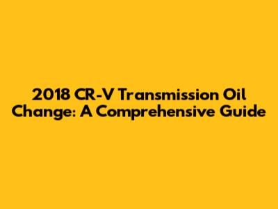 2018 CR-V Transmission Oil Change: A Comprehensive Guide