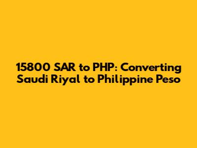 Hey guys! Are you looking to convert 15800 Saudi Riyal (SAR) to Philippine Peso (PHP)? You've landed in the right spot! Whether you're sending money home, planning a trip, or just curious about exchange rates, understanding the conversion is super important. Let's break it down and make sure you get the most accurate info.