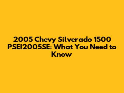 Hey guys! Let's dive into the 2005 Chevy Silverado 1500 PSEI2005SE. If you're looking to buy, maintain, or just understand this specific model a bit better, you've come to the right place. We'll cover everything from its features and specs to common issues and how to keep it running smoothly. So, buckle up and let's get started!