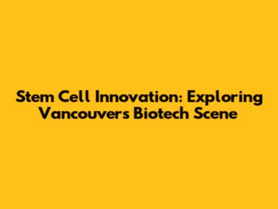 Stem Cell Innovation: Exploring Vancouver's Biotech Scene