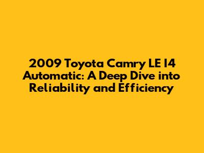 Hey guys! Let's take a closer look at the 2009 Toyota Camry LE I4 Automatic. This car isn't just a set of wheels; it's a testament to Toyota's commitment to reliability, efficiency, and overall value. If you're in the market for a dependable sedan, or just curious about what makes this model tick, you've come to the right place. We'll dive deep into what makes this car so popular, from its engine and performance to its interior features and overall driving experience. By the end, you'll have a solid understanding of why the 2009 Camry LE remains a respected choice in the used car market. So, buckle up, and let’s get started!