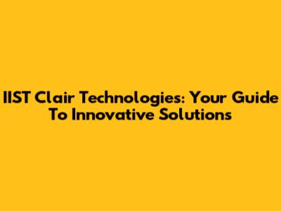 IIST Clair Technologies: Your Guide To Innovative Solutions
