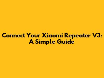 Connect Your Xiaomi Repeater V3: A Simple Guide