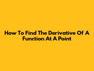 How To Find The Derivative Of A Function At A Point