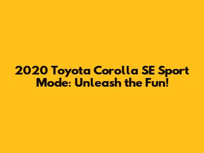 Hey Corolla enthusiasts! Are you ready to dive deep into the sporty side of your 2020 Toyota Corolla SE? If you're like most drivers, you're probably looking to squeeze every bit of performance and enjoyment out of your ride. Well, you've come to the right place! We're going to explore the ins and outs of the Sport Mode in your Corolla SE, how it works, what it does, and whether it's the right choice for your everyday driving. Buckle up, because it's going to be a fun ride!