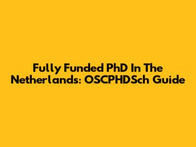 Fully Funded PhD In The Netherlands: OSCPHDSch Guide