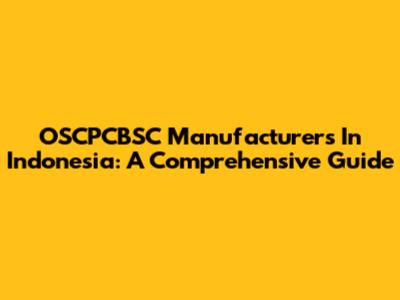OSCPCBSC Manufacturers In Indonesia: A Comprehensive Guide
