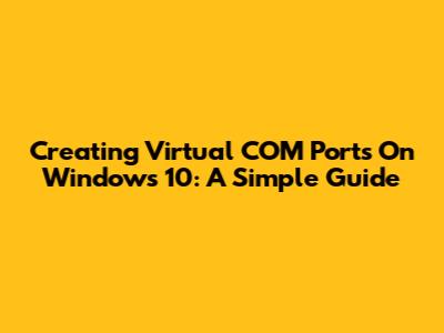 Creating Virtual COM Ports On Windows 10: A Simple Guide