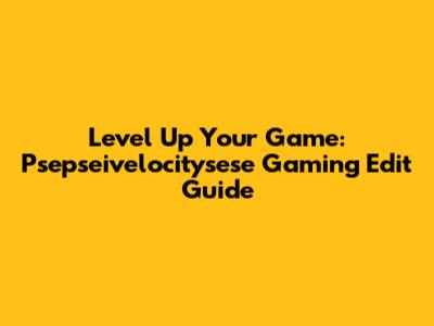 Level Up Your Game: Psepseivelocitysese Gaming Edit Guide