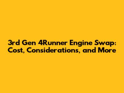 An engine swap is a significant undertaking that can breathe new life into your 3rd Gen 4Runner. By carefully considering the factors discussed in this article, you can make an informed decision and budget accordingly. Remember to research your options, get multiple quotes, and choose a shop you trust. Whether you choose to do it yourself or hire a professional, an engine swap can be a rewarding project that will keep your 4Runner running for years to come. I hope you got a good understanding of the 3rd Gen 4Runner engine swap cost. Good luck with your project, and happy trails!