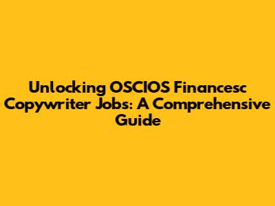 Unlocking OSCIOS Financesc Copywriter Jobs: A Comprehensive Guide