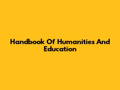 Handbook Of Humanities And Education