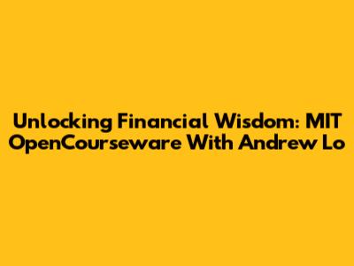 Unlocking Financial Wisdom: MIT OpenCourseware With Andrew Lo