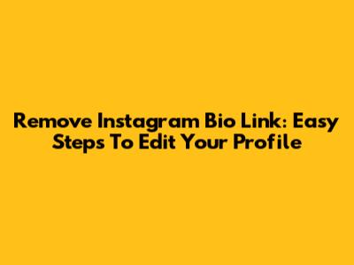 Remove Instagram Bio Link: Easy Steps To Edit Your Profile