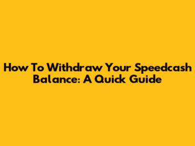 How To Withdraw Your Speedcash Balance: A Quick Guide