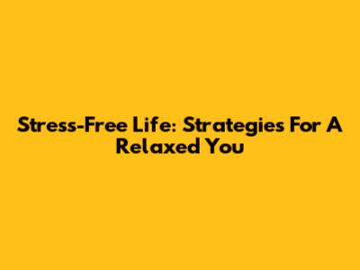 Stress-Free Life: Strategies For A Relaxed You