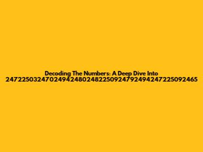 Decoding The Numbers: A Deep Dive Into 247225032470249424802482250924792494247225092465