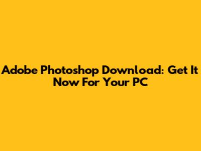 Adobe Photoshop Download: Get It Now For Your PC