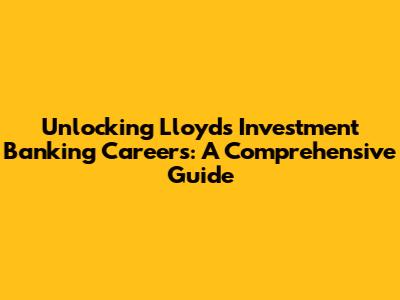 Unlocking Lloyds Investment Banking Careers: A Comprehensive Guide