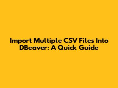 Import Multiple CSV Files Into DBeaver: A Quick Guide