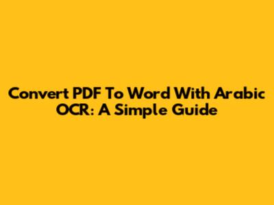 Convert PDF To Word With Arabic OCR: A Simple Guide