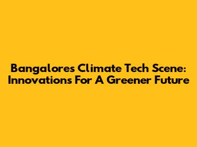 Bangalore's Climate Tech Scene: Innovations For A Greener Future