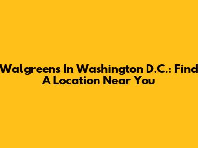 Walgreens In Washington D.C.: Find A Location Near You