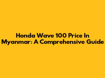 Honda Wave 100 Price In Myanmar: A Comprehensive Guide