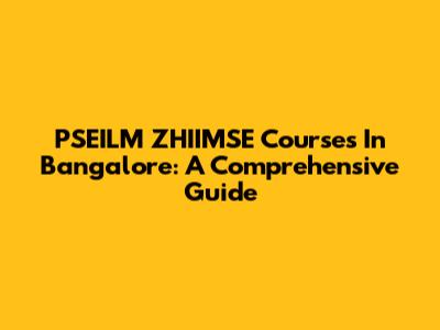 PSEILM ZHIIMSE Courses In Bangalore: A Comprehensive Guide