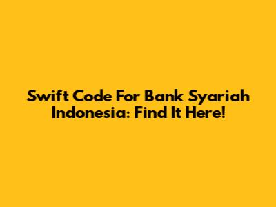 Swift Code For Bank Syariah Indonesia: Find It Here!