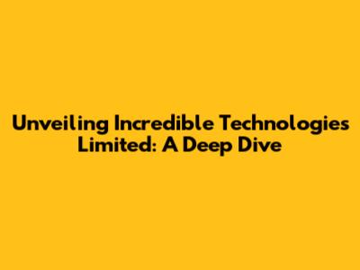Unveiling Incredible Technologies Limited: A Deep Dive