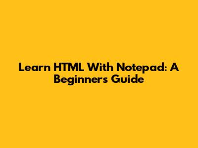 Learn HTML With Notepad: A Beginner's Guide