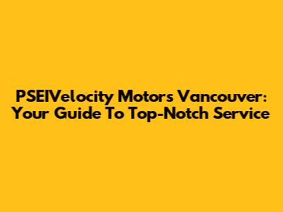 PSEIVelocity Motors Vancouver: Your Guide To Top-Notch Service