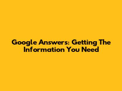 Google Answers: Getting The Information You Need