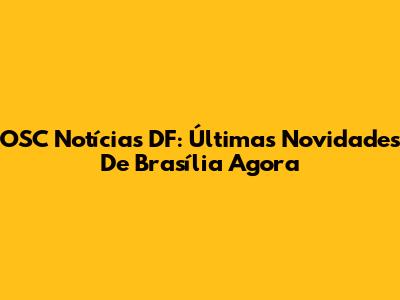 OSC Notícias DF: Últimas Novidades De Brasília Agora