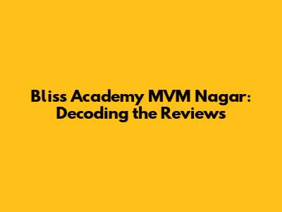 Hey there, future learners! If you're on the hunt for the perfect academy in MVM Nagar, Bangalore, then you've probably stumbled upon Bliss Academy. Deciding on the right educational path can feel like navigating a maze, right? Don't sweat it, guys! This article is all about helping you decode the buzz around Bliss Academy MVM Nagar. We'll dive deep into what students are actually saying, break down the good, the not-so-good, and give you the real deal so you can make an informed decision. So, buckle up, and let's get started!