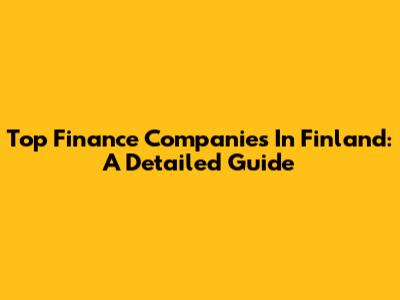Top Finance Companies In Finland: A Detailed Guide