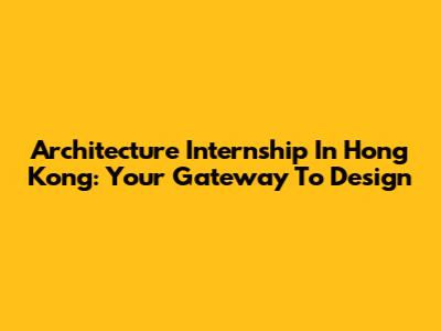 Architecture Internship In Hong Kong: Your Gateway To Design