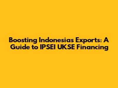 Hey there, fellow export enthusiasts! Are you guys ready to dive deep into the world of export finance in Indonesia, specifically focusing on the IPSEI UKSE (Indonesian Export Financing Agency – UK Export Finance)? If you're an Indonesian business looking to expand your reach globally, or if you're just curious about how Indonesia supports its exporters, then you've come to the right place. In this article, we'll break down everything you need to know about IPSEI UKSE financing, from what it is and how it works to the benefits it offers and the application process. Get ready to unlock the secrets of international trade and learn how IPSEI UKSE can be your key to success in the global marketplace. Buckle up, because we're about to embark on an exciting journey into the realm of Indonesian export finance!