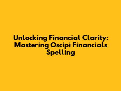 Unlocking Financial Clarity: Mastering Oscipi Financials Spelling