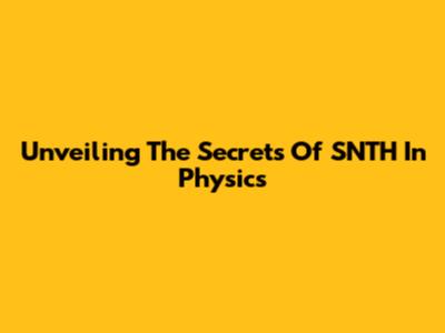 Unveiling The Secrets Of SNTH In Physics