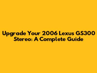 Upgrade Your 2006 Lexus GS300 Stereo: A Complete Guide