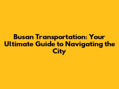 Essential Travel Tips for Busan Transportation