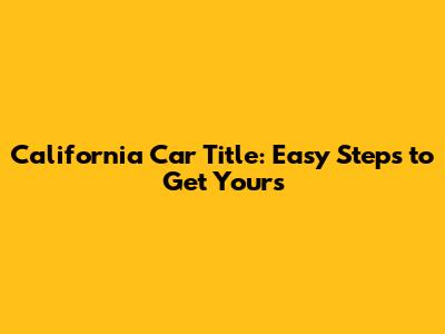 California Car Title: Easy Steps To Get Yours