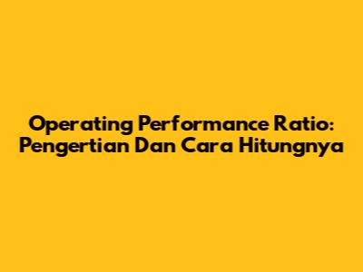 Operating Performance Ratio: Pengertian Dan Cara Hitungnya