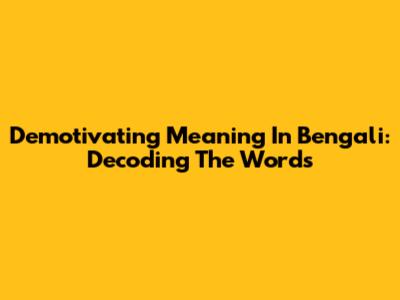 Demotivating Meaning In Bengali: Decoding The Words