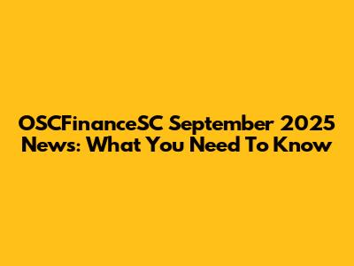 OSCFinanceSC September 2025 News: What You Need To Know