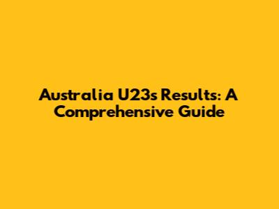 Australia U23's Results: A Comprehensive Guide