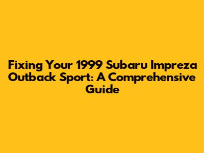Fixing Your 1999 Subaru Impreza Outback Sport: A Comprehensive Guide