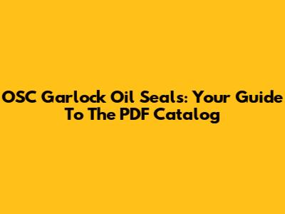 OSC Garlock Oil Seals: Your Guide To The PDF Catalog
